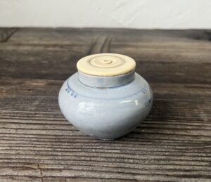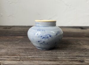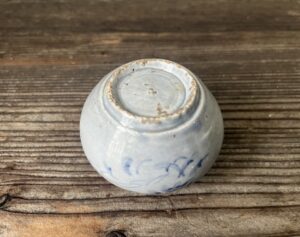 線の下部分、向かい合わせの二面に花模様が呉須で描かれます。