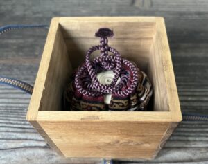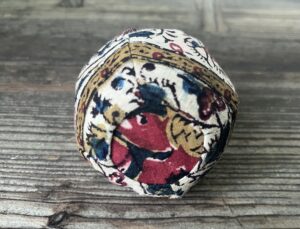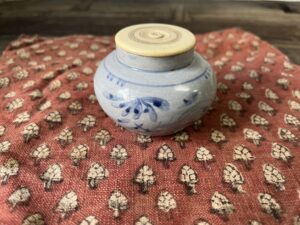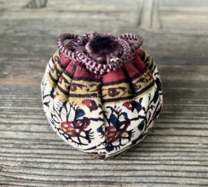 古い更紗で仕覆を誂えると、このお品の美しさが引き立つことと存じます。