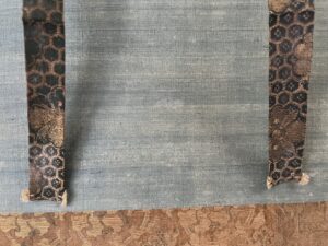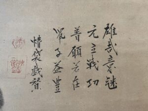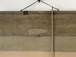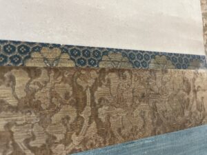 軸装に虫食いがあり、表具裂の劣化、捲れ始めた部分がございますが、