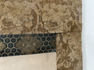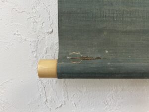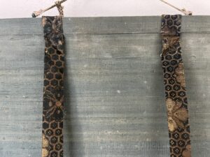 軸装に虫食いがあり、表具裂の劣化、捲れ始めた部分がございますが、