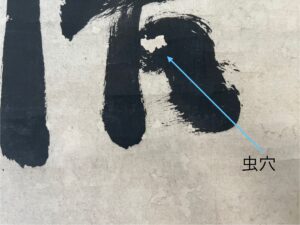 「悟」の「口」の上辺に、虫食い穴がございます。