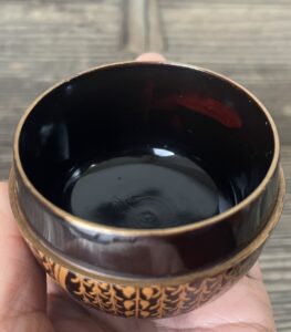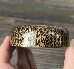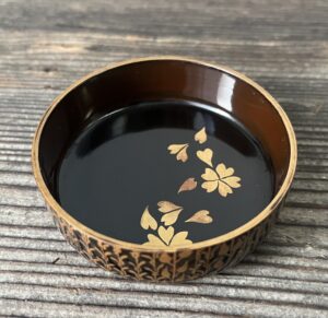 蓋裏に、桜の花・花びらが金蒔絵されていますが、