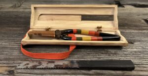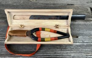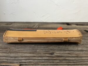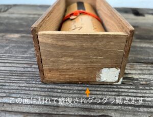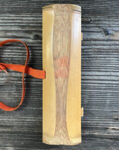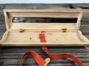 蓋には、唐木か黒柿の柄をつけた小さな鋸が収納されています。