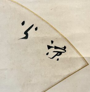 扇面の周りの紙の下際に大きな折れがございますが、