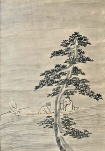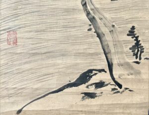松の立つ土坡は諸々省略された大胆な筆致です。