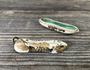 焼き物の表面を盛り上げて、蟹や鳩などの小動物を立体的にリアルに表現する装飾陶磁器を制作。
