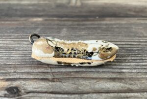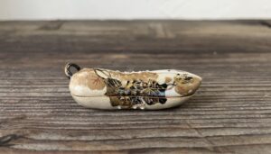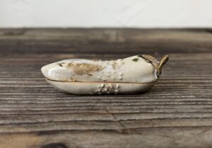 焼き物の表面を盛り上げて、蟹や鳩などの小動物を立体的にリアルに表現する装飾陶磁器を制作。